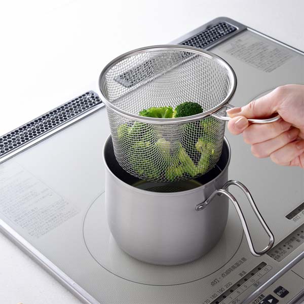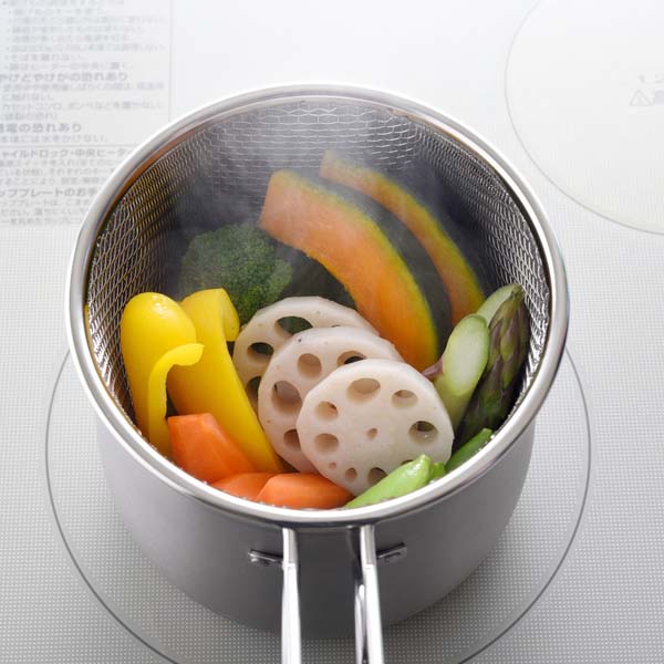 1台9役、便利なザル付きで揚げ物から蒸し料理も簡単に。