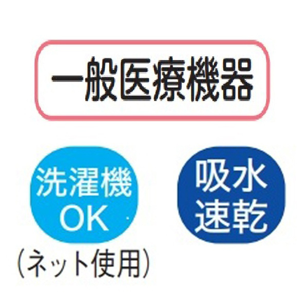 | 注意事項 | 【使用上の注意】体質などにより、着用時肌の異常(かゆみ、かぶれなど)を起こす場合があります。異常を感じた場合は、使用を中止してください。 【取扱い上の注意】本品は繰り返し使用可能ですが、素材の特性上、湿気や日光(紫外線)の影響を受けたり、長期の使用による経年劣化で伸びが生じたりする場合がありますので、ご注意ください。 |