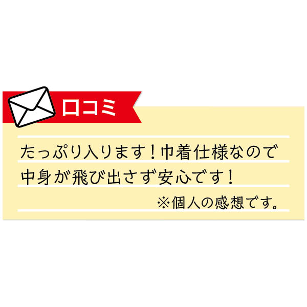 | 付属品 | 外側:オープンポケット1コ 両サイドハンドル・ホック 巾着開閉式 |